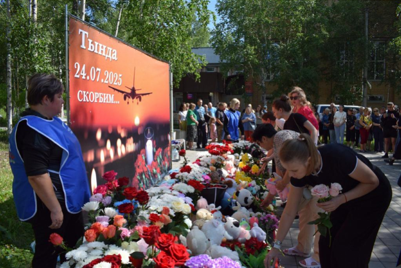 7月25日,人们在俄罗斯阿穆尔州滕达市悼念客机失事遇难者。新华社发
